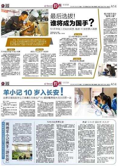 走进小天才,映入眼帘的是一个巨大的LED屏幕,上面写着“欢迎羊城晚报长安选堂学子记者”,顿时我感到很自豪,我是一名羊城晚报长安选堂学子记者。