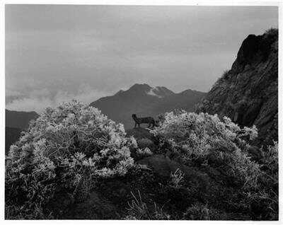 《归山》曾获2011年连州国际摄影年展评委会特别奖。在这一系列作品中,艺术家让一个个野生动物标本包括豹子、鹤、猴、鹿等回归山林,但事实上它们早已失去生命,归山其实意同死亡。