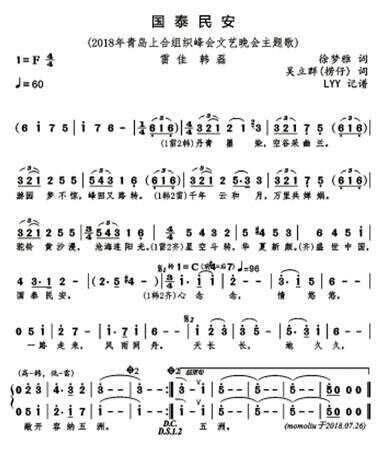 吴立群说,这首歌写的就是当代中国人的一种状态:国泰民安——人民生活富裕安康,国家社会和谐安定。整首歌在作曲上偏抒情。在编曲配器方面,歌曲运用了管弦乐乐队,同时是大合唱的形式,显得很厚重。