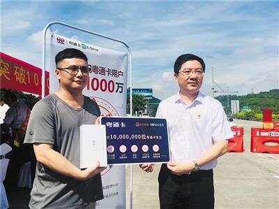 羊城晚报讯 记者严艺文、通讯员粤交集宣摄影报道:7月1日,记者在广东省交通集团深化收费公路制度改革、取消高速公路省界收费站工作推进会上获悉,全省粤通卡用户已突破1000万,预计10月底完成1400多个ETC门架系统建设。7月1日,记者从广东联合电子服务股份有限公司(以下简称“联合电服”)获悉,据不完全统计,今年粤通卡新增用户已逾100万。仅5月15日至6月30日,粤通卡发行超过60万张。
