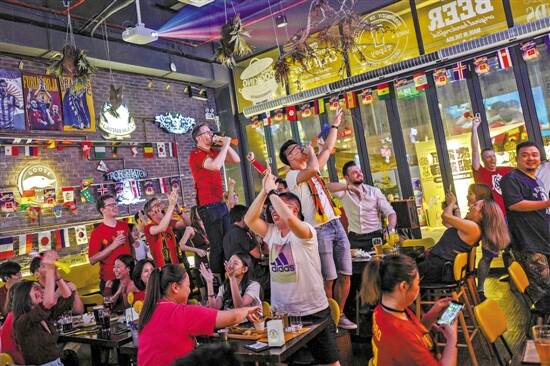 ▲球迷们在越秀区某酒吧看球(资料图) 羊城晚报记者 宋金峪 摄