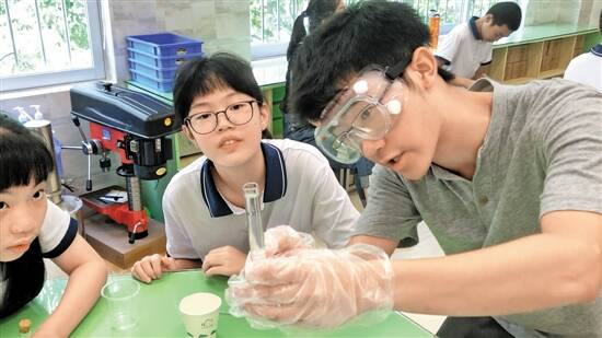 “老师,不小心把盐水吞下去了怎么办?”一个瘦高男生的惊呼让全班哄堂大笑。同学们将混合了唾液的盐水注入试管,按比例加入洗涤剂,封闭好,然后开始慎重地摇晃自己的唾液。一时间,只见手腕翻转、试管翻飞,实验室上空摇晃着的都是口水。
