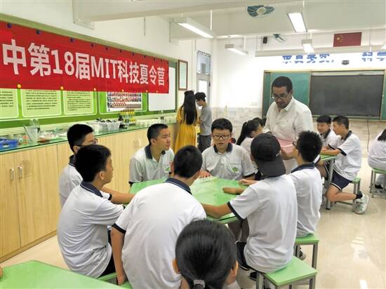 中大附中信息技术老师郭慧明介绍,MIT科技夏令营在中大附中举办了18年,已经成为中大附中科技特色项目,MIT每年暑假选派学生到中大附中进行一周的科技夏令营,全校学生自由报名参加。
