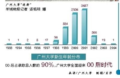 羊城晚报讯 记者张璐瑶、通讯员广大宣报道:25日,广州大学7600多名2019级本科新生正式开学,大学城和桂花岗两个校区同时迎新。记者留意到,今年广州大学入学新生中,“00后”成为主力军,约占全部新生九成,年纪最小的一位新生出生于2004年,刚过15岁生日不久。“00后”成主力军