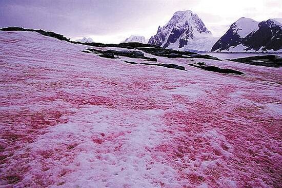 世界上真的有西瓜瓤颜色的雪,而且闻起来还有西瓜味儿。在美国内华达州的山地以及世界其他许多地方的极地和高山,每一年都会出现神秘的“西瓜雪”。