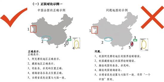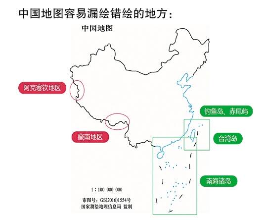我们说的“问题地图”主要指存在危害国家主权统一、领土完整、安全和利益等严重问题的地图,“问题地图”的常见错误有漏绘钓鱼岛、赤尾屿、南海诸岛等重要岛屿,错误表示台湾省、错绘藏南地区和阿克赛钦地区国界线等。