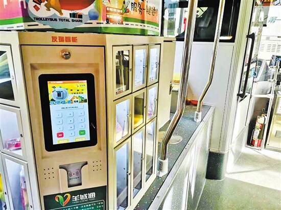 羊城晚报讯 记者严艺文摄影报道:广州电车公司106路、113路等约230辆公交车上的车载自动售货机近日悄然开张。市民可以在售货机里买到纸巾、雨伞、雨衣等便民物品,并支持羊城通充值。9月4日,记者亲身体验公交车上的“流动士多”,并随机采访乘车市民,市民多表示“有需求就会买”。现场