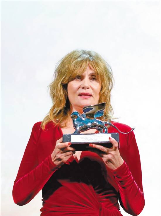 ▲《我控诉》演员埃玛纽埃勒·塞涅代导演罗曼·波兰斯基领取银狮奖