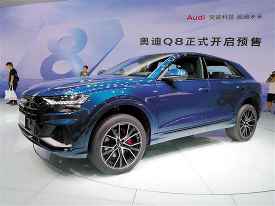 在本届成都车展上,一汽-大众奥迪以“聚势 齐发”为主题,携多款重磅车型亮相。其中,奥迪Q家族全新旗舰产品——全新奥迪Q8在车展现场正式启动预售,预售价格区间为:770000元-1020000元;同时,还推出了288台至尊限量版车型,售价为1097600元。为此,一汽-大众奥迪销售事业部副总经理胡绍航表示:“奥迪Q8的出现,不仅完成了奥迪最高产品序列的布局,与奥迪A8、奥迪R8一起组成了奥迪‘8’字符号的旗舰产品阵容,更助推品牌形象到达全新高度。”作为奥迪Q家族新旗舰产品,全新奥迪Q8开创了Q家族的全新设计语言,实现了轿跑优雅型格和SUV实用空间的平衡。在欧洲市场一经推出,2019上半年销量已突破7000辆。新车源于和兰博基尼Urus、宾利添越相同的MLB evo顶级平台,在外型尺寸方面,Q8的长/宽/高分别为5006/1995/1704(毫米),轴距则达到了2995毫米,并提供10种外观颜色供选择。在动力配置方面,Q8分别搭载了2.0T和3.0T两款发动机,最大可提供的功率达到250千瓦,最大扭矩可达500牛·米,百公里加速时间仅为6.2秒;此外,搭配的48V轻混系统,还可以实现高达12千瓦的回收功率和22公里/小时的起停运行。而在舒适、科技、安全等方面,Q8也搭载了众多旗舰级别的最新前沿配置和功能。