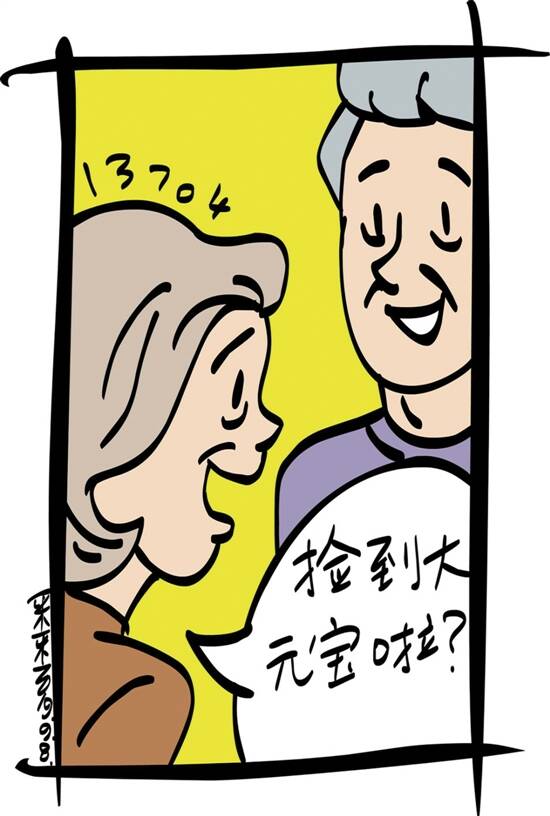 老孔乐呵呵地说:“我的彩票中二等奖啦!这可都是你的功劳哟,如果不是你腿受伤了,我没时间研究彩票,还中不了奖呢。” (熊燕)