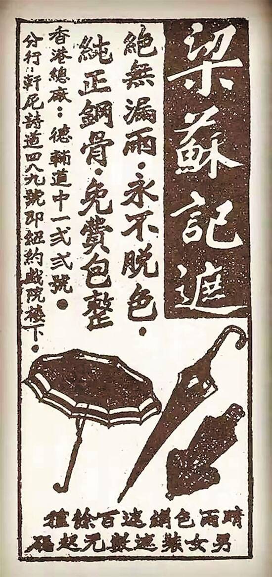 当时人们出门遮阳挡雨,多用油伞,伞面是油纸所做,伞骨为竹枝。这种伞用烂了就只能当柴火烧,但后来洋伞传入,伞面用布做,伞骨用钢枝做,比油伞经久耐用得多。由于洋伞的钢骨大部分是日本、德国造的,在时人眼中,洋伞成了时髦、贵重的物品,拥有一把洋伞,是富贵人家的象征。很多人的洋伞用烂了也舍不得丢,修修补补再用,直到修无可修了,才卖给收买佬,那些钢骨也是值钱的。
