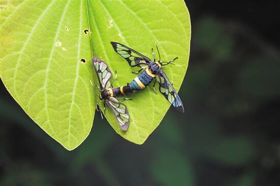 刘海春已经练就了这个本事,他能在一片树叶前,一蹲几十分钟,手里端着相机,一动不动地盯着一只虫,等它醒来,等它在树叶上游走,等它蚕食树叶,或者,等它振翅飞起那一瞬。他只是偶尔轻摁一下快门,从不用连拍,他觉得,快门的“咔嚓”声,是对一只虫不礼貌的惊扰。所以,他的镜头之下的虫们,表情、动作都自然而惬意,浑然不知自己已经成了主角。