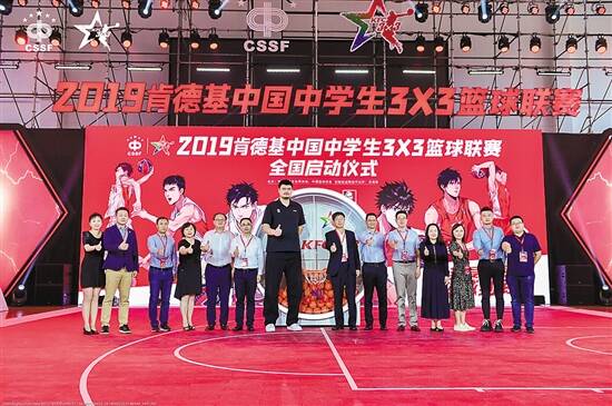 羊城晚报上海讯 记者魏超然报道:昨天下午在上海交大附属中学,2019肯德基中国中学生3×3篮球联赛正式启动。上海交大附中队和东莞四中队在上百名观众的见证下展开了两场激烈交锋,东莞四中队均取得胜利。中国中学生体育协会主席薛彦青、中国篮球协会主席姚明以及百胜中国肯德基品牌总经理黄进栓等领导和嘉宾共同启动了赛事。据悉,赛事是在中国中体协和中国篮协全面支持下打造的全新联赛项目,融合了原中国高中男子3×3篮球联赛和原肯德基三人篮球赛两大高影响力联赛,将成为更具全国影响力的青少年三人篮球运动权威赛事。所有参赛球队经过班级联赛、大区赛以及全国总决赛,最终决选出本年度全国最强的青少年三人篮球队伍。