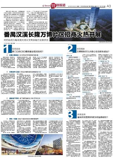 番禺区委常委、常务副区长黄卡表示,汉溪长隆万博片区是一个雄踞中心、融通四方的城市枢纽CBD,一个高端要素汇聚的欢乐繁华CBD,一个“办公就在家门口”的宜业宜居CBD,一个绿色、共享、智慧的高端前沿CBD。