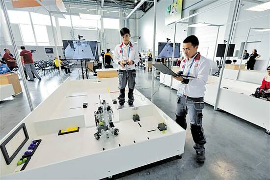 拼装硬件、根据任务编程、让机器人突破重重难关……在世界技能大赛的舞台上,来自广州市机电技师学院的胡耿军,与云南技师学院郑棋元“强强联手”。短短4天里,面对一个个机械零件,胡耿军不断地攻破难关,最终一举摘得第45届世界技能大赛移动机器人项目金牌,打败连续五届的冠军得主韩国,实现了中国在该项目上金牌零的突破。