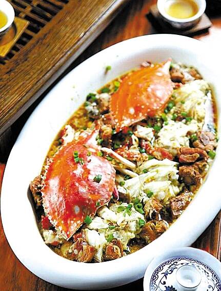 近几年,梭子蟹在广州的星级酒店也频频现身。粤海喜来登酒店的采悦轩中餐厅,就以粤菜独有的“啫啫”烹调手法炮制了一道“生啫梭子蟹煲”。