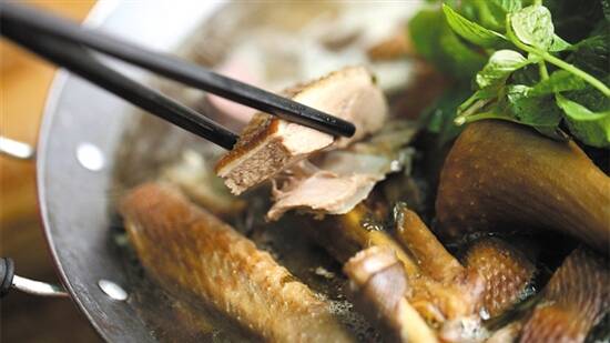 “南乳焖鹅”是开平古镇的传统食法,所用的是开平的土特产——马岗鹅。