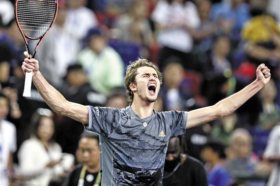 小兹维列夫晋级半决赛后庆祝 新华社发