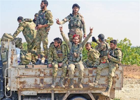 21日,土耳其支持的叙利亚反对派武装“叙利亚国民军”从叙利亚北部边境城镇拉斯艾因撤往土耳其边境城镇杰伊兰珀纳尔 新华社发