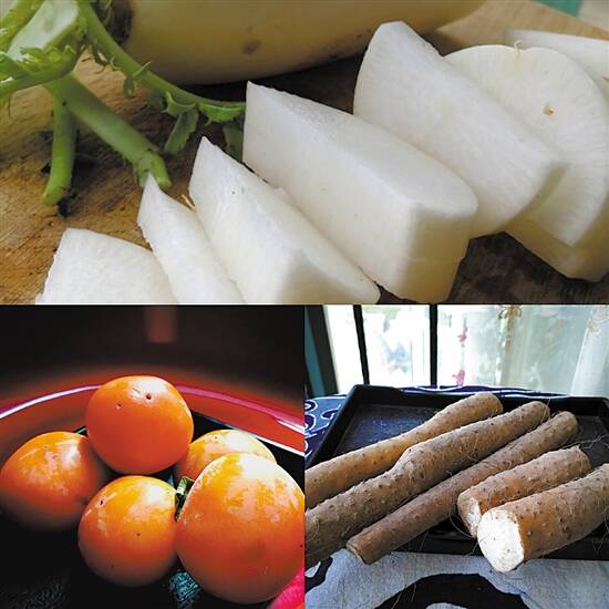 南瓜温中益气、补脾养胃,板栗通肾气、厚肠胃、强筋活血,柿子生津液、除燥热、润肺化痰,莲藕调中健脾、润肺养阴,山药补脾养肺、固肾益精,白萝卜顺气宽中、化痰生津等等,都是适合霜降时节的养生食品。