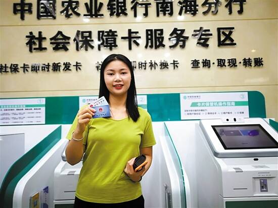 羊城晚报讯 记者景瑾瑾摄影报道:10月28日,佛山市社保局组织召开全市社保卡服务能力提升暨电子社保卡应用推广工作推进会。记者从会上获悉,佛山在省内率先开启自助式社保卡发卡服务模式,参保人通过自助机就可以实现社保卡即时新开卡和补换卡并激活,目前农业银行南海分行设有自助设备,参保人通过自助设备申领社保卡,办理时间由之前的2到3个月缩短为3到5分钟。
