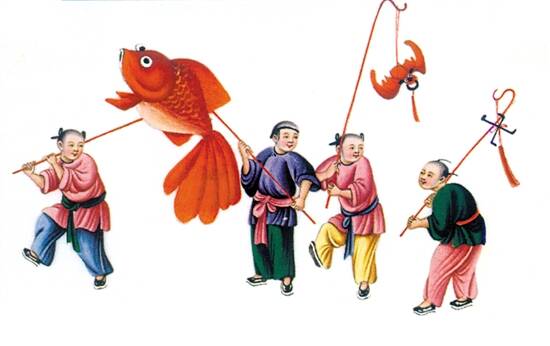 阳江“鲤鱼化龙”舞,起舞时一条红鲤和四条金鲤相继登场,在游弋嬉戏,在腾跃吐雾之后,一股青烟突起,红色的鲤鱼化为一条青龙,与四条金色的鲤鱼一起戏水戏珠,表演“金钱挂带”“鲤跃龙门”“吉祥如意”等画面,展现了人们不断进取以及功成名就后的欢悦。