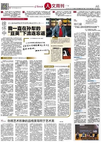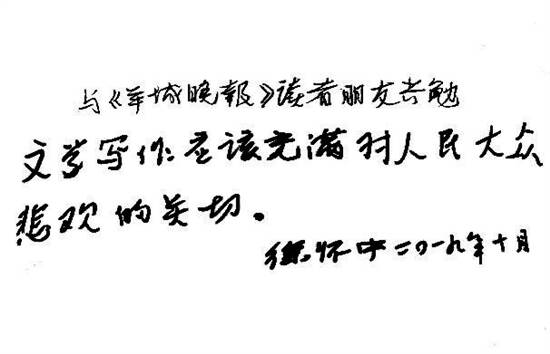 徐怀中:我个人写作的时候有个不好的习惯,总是要把一个段落背诵下来才能写,写作中抠抠索索,总是在修改,这样就把写作过程拉得很长很苦,以至于到后来年龄这么老了,也不着急了,写到哪儿算哪儿好了。
