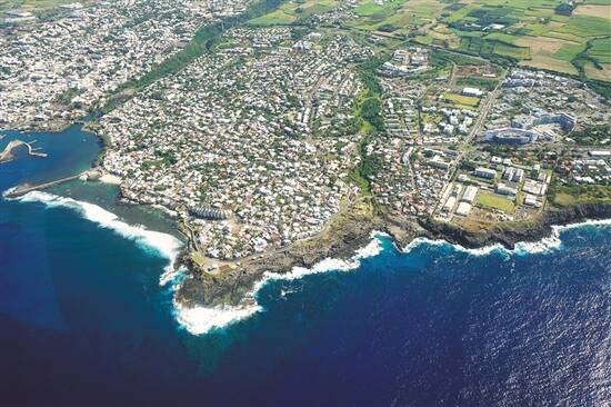 直升机俯瞰留尼汪的海与城