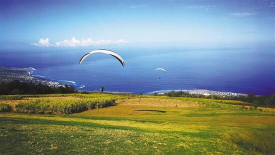 除了直升飞机,留尼汪的滑翔伞体验更扣人心弦。留尼汪的滑翔伞飞越有两种高度,分别是1500米和800米,以适合不同难度要求的滑翔伞爱好者。就算是没有滑翔伞经验的游客也可乘坐滑翔伞飞越圣勒(Saint-Leu),听从教练的指挥一同升空,从心惊肉跳到轻松享受海天一色,或许就是一瞬间。教练还可以提供照片或录像服务,把难忘瞬间保存下来。