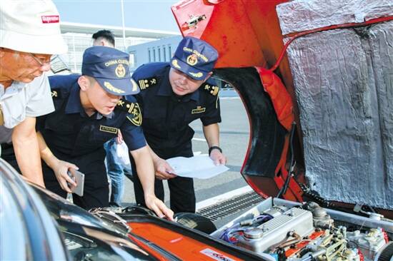 拱北海关关员为自驾游“老爷车”快速办理通关手续 羊城晚报记者 钱瑜