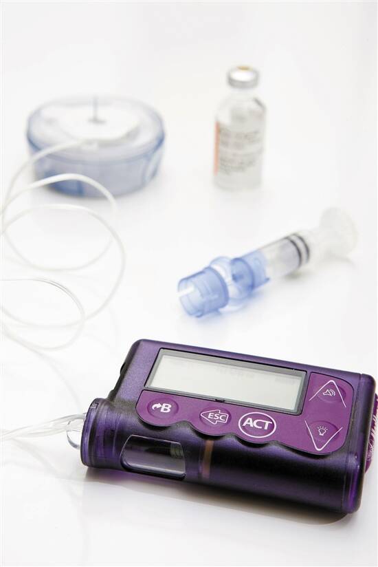 【胰岛素泵】胰岛素泵是个形状、大小如同BP机,通过一条与人体相连的软管向体内持续输注胰岛素的装置。由于能模拟人体胰岛素分泌的生理模式,胰岛素泵又被称为“人工胰腺”。