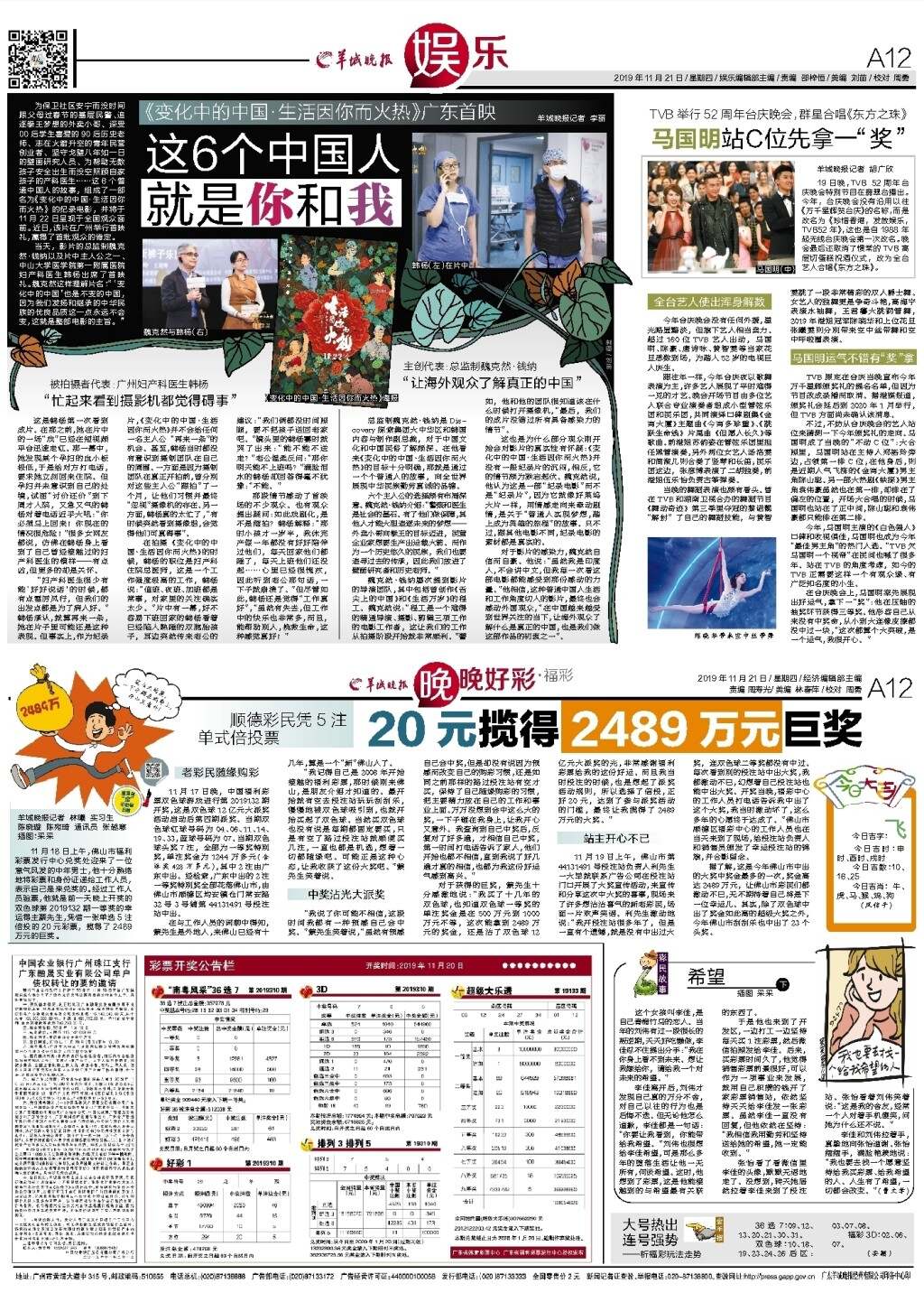 第A12版:娱乐;晚晚好彩·福彩