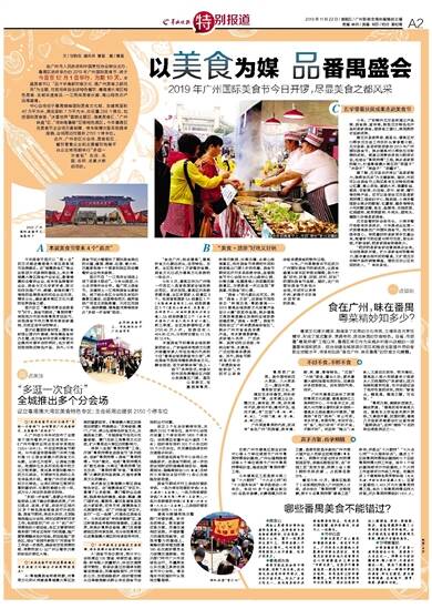 由广州市人民政府和中国烹饪协会联合主办,番禺区政府承办的2019年广州国际美食节,将于今日至12月1日举行,为期10天。本届美食节以“品千年商都饮食文化·展广州美食之都风采”为主题,可现场体验全球特色餐饮、粤港澳大湾区特色美食、全城非遗食品、一江两岸美食长廊、高山特色农产品等盛宴。