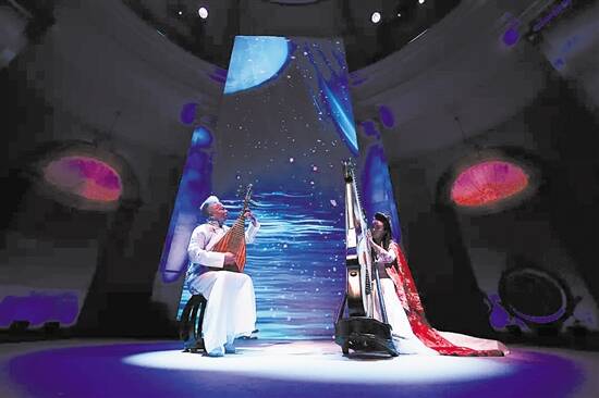 方锦龙在国宝音乐会上与箜篌演奏家吴琳合奏