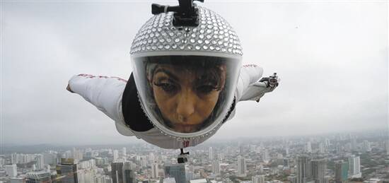 2015年12月,35岁的意大利美女Roberta Mancinoch身着翼装从直升机上跳下,成为首位翼装飞行成功穿越巴拿马城的人。