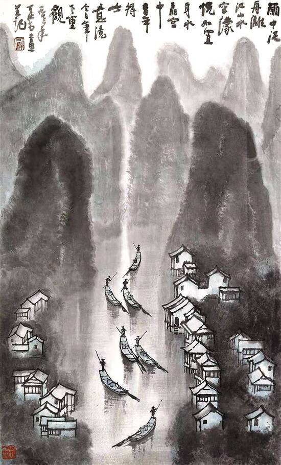 李可染 雨中漓江