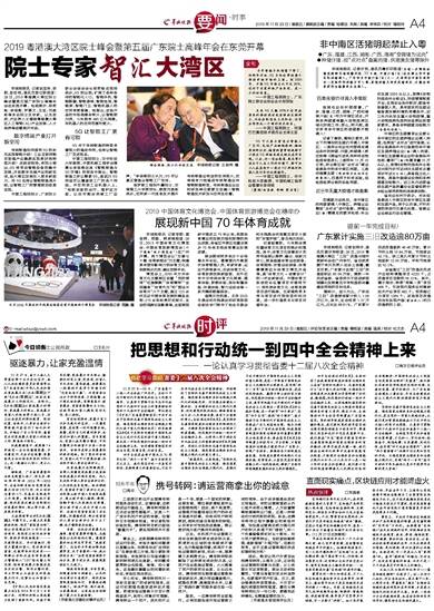 11月25日—26日,广东省委十二届八次全会在广州召开。全会以习近平新时代中国特色社会主义思想为指导,认真学习贯彻习近平总书记在党的十九届四中全会上的重要讲话和党的十九届四中全会精神,审议通过了《中共广东省委贯彻落实〈中共中央关于坚持和完善中国特色社会主义制度、推进国家治理体系和治理能力现代化若干重大问题的决定〉的实施意见》和《关于支持深圳建设中国特色社会主义先行示范区的若干重大措施》,要求进一步把思想和行动统一到四中全会精神上来,切实增强贯彻落实的政治自觉、思想自觉、行动自觉。
