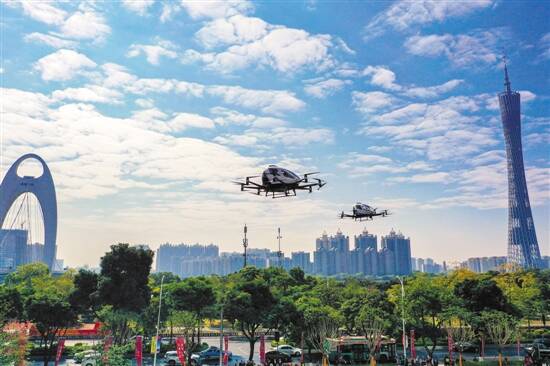 电动载人级自动驾驶飞行器在广州上演空中首秀