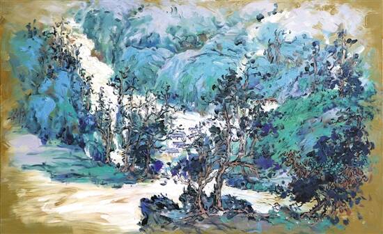 在经过一段的学习和实践之后,渐渐感觉传统国画也有它的局限,比如不及油画的色层丰富,难以堆砌出厚重的肌理效果,有时会觉得意犹未尽……后来经过近三十年在国外的绘画经历,油画技法和材料的掌握日益自如,很自然地就想到尝试把国画的意念、气韵用油画的厚重粗犷笔触和沉着浓厚的色彩结合起来,有时又在流动浑然的色彩层次中,加上若隐若现的国画线,导出既具象又缥缈的画面效果。