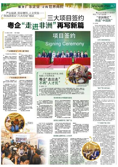 在非洲,每两部手机就有一部来自广东;在西非,广东产的“飞肯”摩托车就是好质量的代名词,每年“飞肯”出口非洲摩托车8万辆、市场增长率每年增长20%;广汽、格力空调等广东制造在非洲颇受欢迎,甚至当下火热的“网红”带货模式也被粤商带入非洲……在“走进非洲”活动现场,很多参加者因为面对面的体验式交流,对非洲商贸有了更全面、直观的认识。而新南方集团旗下的尼日利亚广东经济贸易合作区和肯尼亚珠江经济特区,则更像汇聚企业的“天猫”,成为推动广东企业“走出去”重要平台。