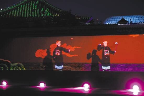 ▲ 今年12月5日晚,在沈阳故宫上演的一场《一朝发祥地,两代帝王都》灯光秀,让庄严肃穆的故宫焕发生机。一身黄袍的皇太极跟着动感的音乐节奏,欢快地蹦着迪……
