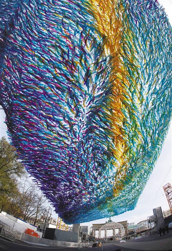 ▲今年11月在德国柏林,艺术家用3万根彩带打造出的绚烂艺术装置,是为了纪念柏林墙倒塌30周年。