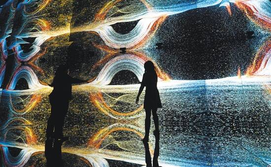 去年10月在英国曼彻斯特科学节科学与工业博物馆里展示的一种沉浸式装置艺术,作品结合了交互式视频墙和360°无限镜像装置,让人们可以身临其境地了解“跌落黑洞是怎样一种体验”。 ▲
