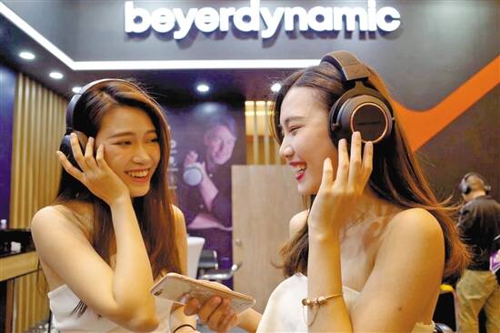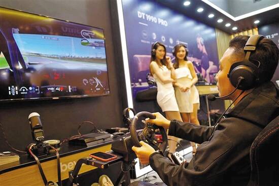 今年的音响唱片展也更“好玩”了。除了常规的试听之外,参展商更各出奇招吸引眼球。在德国品牌拜雅的摊位上摆了一台大型赛车游戏机,据工作人员介绍,他们展出了一款游戏专用耳机,观众可以通过试玩游戏机,亲身感受耳机的效果。
