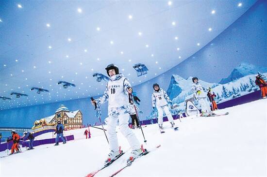 12月14日上午,在室内温度-5℃的广州融创雪世界里,几位身着红色教练服的“滑雪能手”矫健而娴熟地为体验者们演示着正确滑雪姿势和要领。