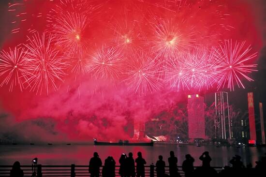 文/钱瑜 郑达 陶奕燃22日晚9时,珠澳共赏烟花,同庆澳门回归祖国20周年。16万发礼花在珠澳上空璀璨绽放,为天空写上一封浪漫的“情书”。这场烟花汇演虽只有半小时,却凝聚了珠澳两地的倾情付出。这是史上首场澳珠烟花汇演。
