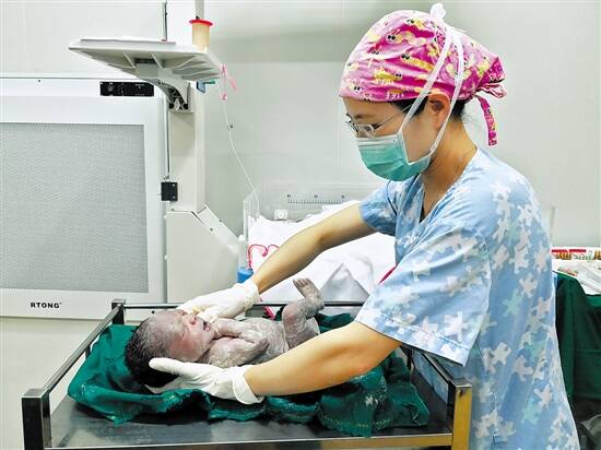 2018年,省妇幼保健院手术团队助产士为非洲加纳新生儿进行清理(省妇幼保健院供图)