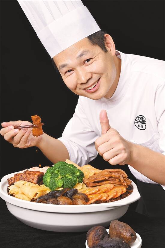 今年,广州酒家除了“合家欢”、“福临门”两款传统新春大盆菜,还全新推出了“盆满钵满大盆菜”,在传统基础上增加了鲍鱼、鸡、猪手、海参、鱼肚等名贵材料,让盆菜的规格和口味得到升华。