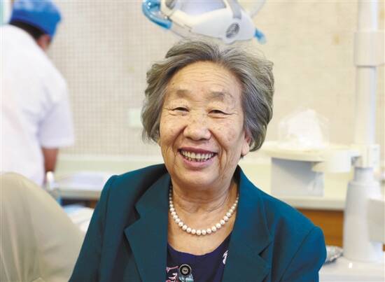 完成缺牙修复的李大妈年轻好几岁