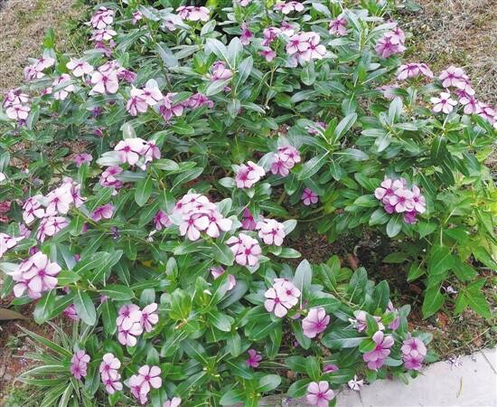 此花别称日日草、日日新、四时春,皆因其常年开花而得名。它是夹竹桃科长春花属,栽培的植株多为一年生草花。但在土壤肥沃、水分充足的环境下往往长成小灌木,分枝多,植株可高达60厘米以上。
